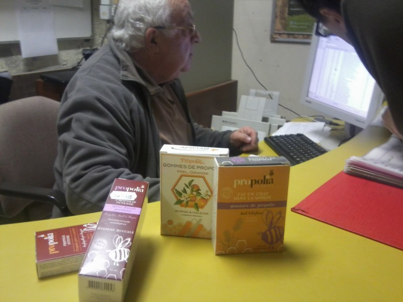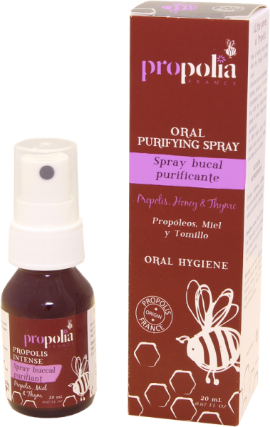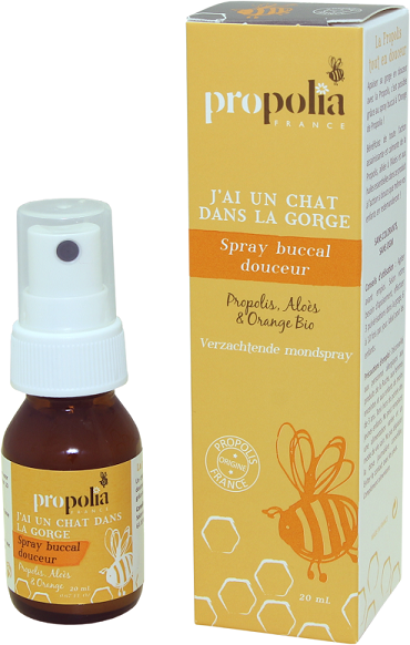 Spray propolis 15 ml. 14 % d’extrait pur de propolis et extraits de plantes pour une haleine pure et agréable. La propolis, douée de pouvoirs purifiants et régénérants, maintient à l’intérieur de la ruche l’environnement favorable à la bonne santé des abeilles. Appliquée à l’homme, c’est une substance possédant une activité inhibitrice puissante à l’égard des agents responsables de désordres organiques. De plus, elle contient tous les oligoéléments nécessaires au fonctionnement harmonieux de l’organisme. Elle en favorise sa résistance grâce à sa richesse en flavonoïdes et phénols. (Indications et mode d’emploi détaillés sur les emballages).