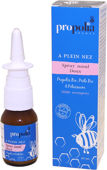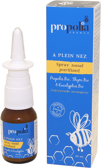 Spray nasal 20 ml La propolis, douée de pouvoirs purifiants et régénérants, maintient à l’intérieur de la ruche l’environnement favorable à la bonne santé des abeilles. Appliquée à l’homme, c’est une substance possédant une activité inhibitrice puissante à l’égard des agents responsables de désordres organiques. De plus, elle contient tous les oligoéléments nécessaires au fonctionnement harmonieux de l’organisme. Elle en favorise sa résistance grâce à sa richesse en flavonoïdes et phénols. (Indications et mode d’emploi détaillés sur les emballages).