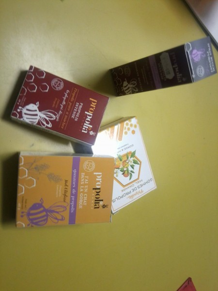 Adoucissent la gorge et purifient l’haleine (2,5 % d’extrait pur de propolis). 45 g.Pâtes miel orange. La propolis, douée de pouvoirs purifiants et régénérants, maintient à l’intérieur de la ruche l’environnement favorable à la bonne santé des abeilles. Appliquée à l’homme, c’est une substance possédant une activité inhibitrice puissante à l’égard des agents responsables de désordres organiques. De plus, elle contient tous les oligoéléments nécessaires au fonctionnement harmonieux de l’organisme. Elle en favorise sa résistance grâce à sa richesse en flavonoïdes et phénols. (Indications et mode d’emploi détaillés sur les emballages).