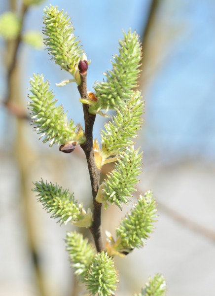 Les pieds mâles donnent des chatons d’abord blanc duveteux qui deviennent jaune poussin au moment de la pleine floraison. Ils fournissent du pollen et du nectar.