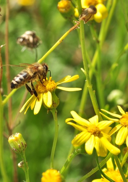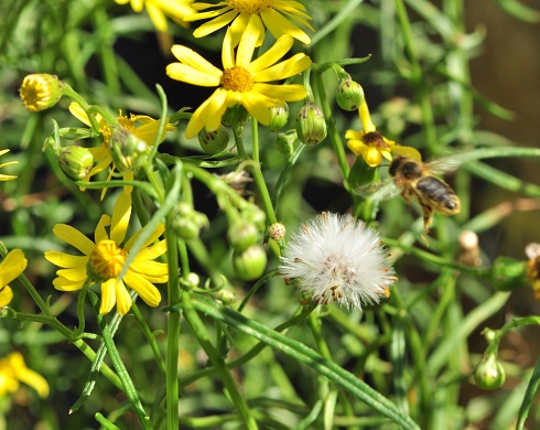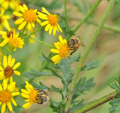 Autour du 11 novembre, l’été de la St-Martin offre souvent de belles journées ensoleillées où la température atteint allègrement plus de 15 °C. Les abeilles en profitent pour effectuer des vols salutaires dits vols de propreté et parfois même pour encore butiner les dernières fleurs de la saison. Cependant, rares sont les plantes qui fleurissent encore en abondance aux marches de l’hiver. Le séneçon du Cap est une exception. Après avoir déjà fleuri une bonne partie de l’été, il semble trouver une deuxième jeunesse avec les pluies d’automne et continue de « jaunir» des talus entiers, des bords de chemin et parfois des endroits les plus insolites comme le ballast de chemin de fer ou les trottoirs en ville. Observer ses abeilles rentrer du pollen en novembre ne peut que réjouir l’apiculteur mais le séneçon du Cap est-il pour autant une plante vraiment recommandable ?