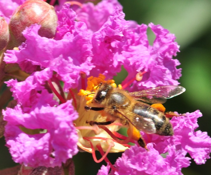 En été, dans le courant du mois d’août et jusqu’en septembre, c’est sa floraison spectaculaire en larges panicules terminales qui retiendra l’attention. Les fleurs possèdent 6 sépalessoudés formant une sorte de coupe sur le bord de laquelle s’attachent 6 pétales richement colorés. Leur base est très rétrécie et leur extrémité largement déployée et curieusement chiffonnée. Cette particularité est à l’origine de la plupart des noms vernaculaires. Leur odeur rappelle, en plus subtil, en moins capiteux, celle des tilleuls. Elles sont très mellifères et fournissent un abondant pollen ce qui est très intéressant à cette époque de l’année. En automne, son intérêt réside au niveau de son feuillage qui passe par tous les tons du jaune, de l’orange et du rouge.