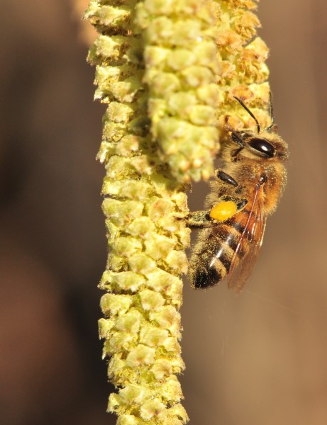 Le privilège d’ouvrir le bal des plantes mellifères revient au noisetier, arbuste commun des forêts et des haies bocagères. C’est un peu un paradoxe car, comme la plupart des essences forestières, le noisetier est un arbuste ou un petit arbre à pollinisation anémophile, c’est-à-dire pollinisé par le vent. Il produit très tôt dans l’année, parfois dès janvier, une importante quantité de pollen qui normalement ne concerne pas les insectes. Cependant, à l’époque de sa floraison, les ressources en pollen sont rares et le sien, est à la base des premières rentrées d’aliments protéinés dans les ruches. L’augmentation de la température et les apports en sources de protéines stimulent la ponte de la reine, l’année apicole est bien redémarrée.
