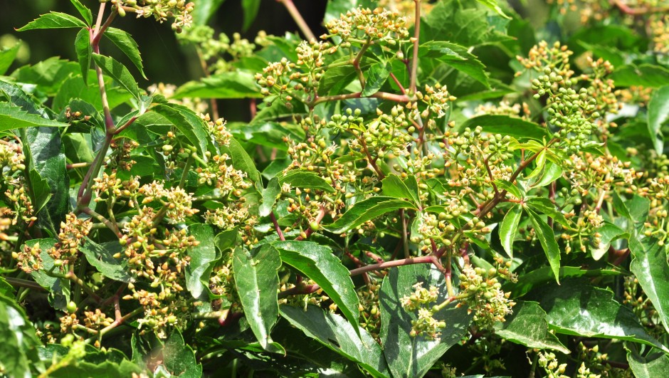 La parthénocisse à 5 folioles (Parthenocissus quinquefolia) de la famille des vitacées