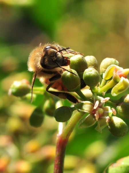 La floraison qui intervient dans le courant du mois de juin présente visuellement très peu d’intérêt. En revanche, les fleurs jaune verdâtre sont très attractives pour les insectes pollinisa-teurs qui y récoltent nectar et surtout du pollen. Les visites ont lieu principalement dans le cou-rant de la matinée et en début d’après-midi. Lorsqu’il fait chaud, les fleurs se tarissent rapi-dement. De petits fruits globuleux, charnus et violets leur succèdent et persistent bien après la chute des feuilles. S’ils sont toxiques pour l’homme, ils sont très appréciés des oiseaux et notamment des étourneaux sansonnets.