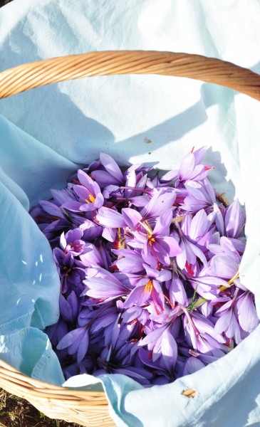 Un bon cueilleur glane environ un millier de fleurs en une heure et leur émondage nécessitera encore au moins deux bonnes heures supplémentaires. Pour produire 1 g de safran prêt à l’emploi il faut récolter les stigmates d’environ 150 fleurs. Pour bien développer la couleur et les arômes délicat de l’épice, on doit la laisser infuser dans du liquide sans la faire chauffer pendant une nuit.