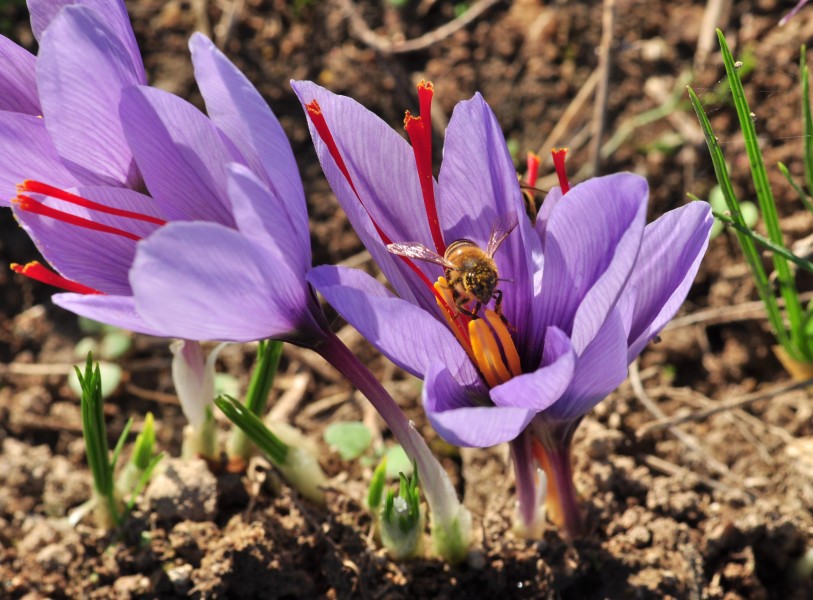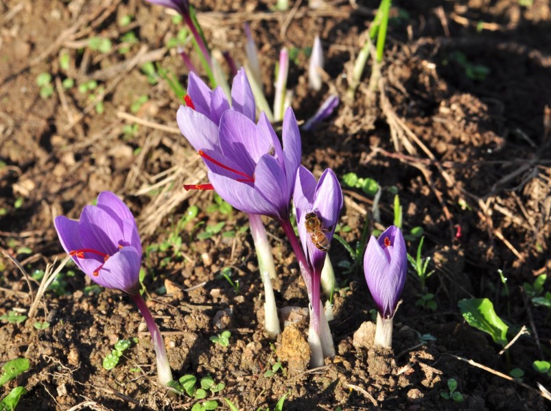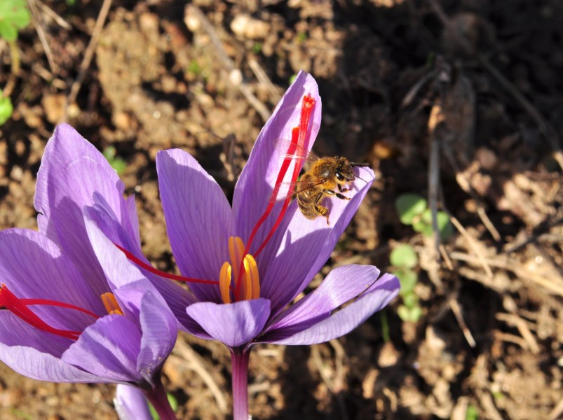 Les crocus sont surtout connus pour leurs nombreuses espèces botaniques et améliorées à floraison pré-vernale et printanière de février à fin avril. Pourquoi ne pas essayer une espèce à floraison automnale qui permettra aux butineuses de récolter leurs dernières pelotes de pollen et à l’apiculteur de joindre l’utile à l’agréable ? En effet, outre son aspect décoratif indéniable, ce crocus permet de récolter l’épice la plus chère au monde, le véritable safran.