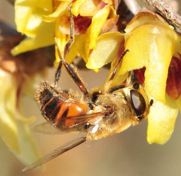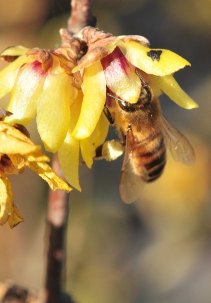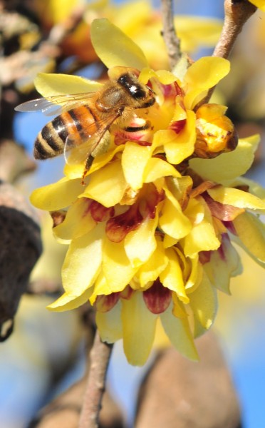 adulte profitent du nectar et du pollen du chimonanthe précoce.